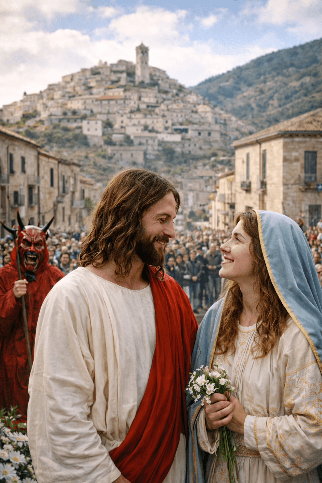In traditions such as the Ballo dei Diavoli, the theatrical language of medieval and baroque popular Christianity is visible: a public staging of good and evil, the community as protagonist, and the town itself turning into a stage.